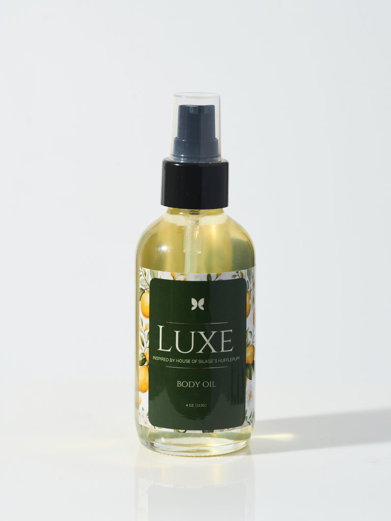 Luxe is a radiant, sun kissed escape captured in a bottle. Inspired by House of Silage's Hufflepuff* is a fragrance that embodies effortless elegance and warm indulgence. It opens with the sparkling brightness of Italian lemon and the succulent sweetness of juicy peach, inviting you into a lush sensory journey. At its heart, creamy coconut mingles with intoxicating sambac jasmine, delicate white freesia, and velvety gardenia bloom, creating a floral embrace that feels both fresh and decadent. The scent lingers with the rich warmth of vanilla bourbon, soft vanilla beans, and the grounding sophistication of Virginian cedar. Luxe is the ultimate expression of modern glamour, luminous, creamy, and unforgettable.